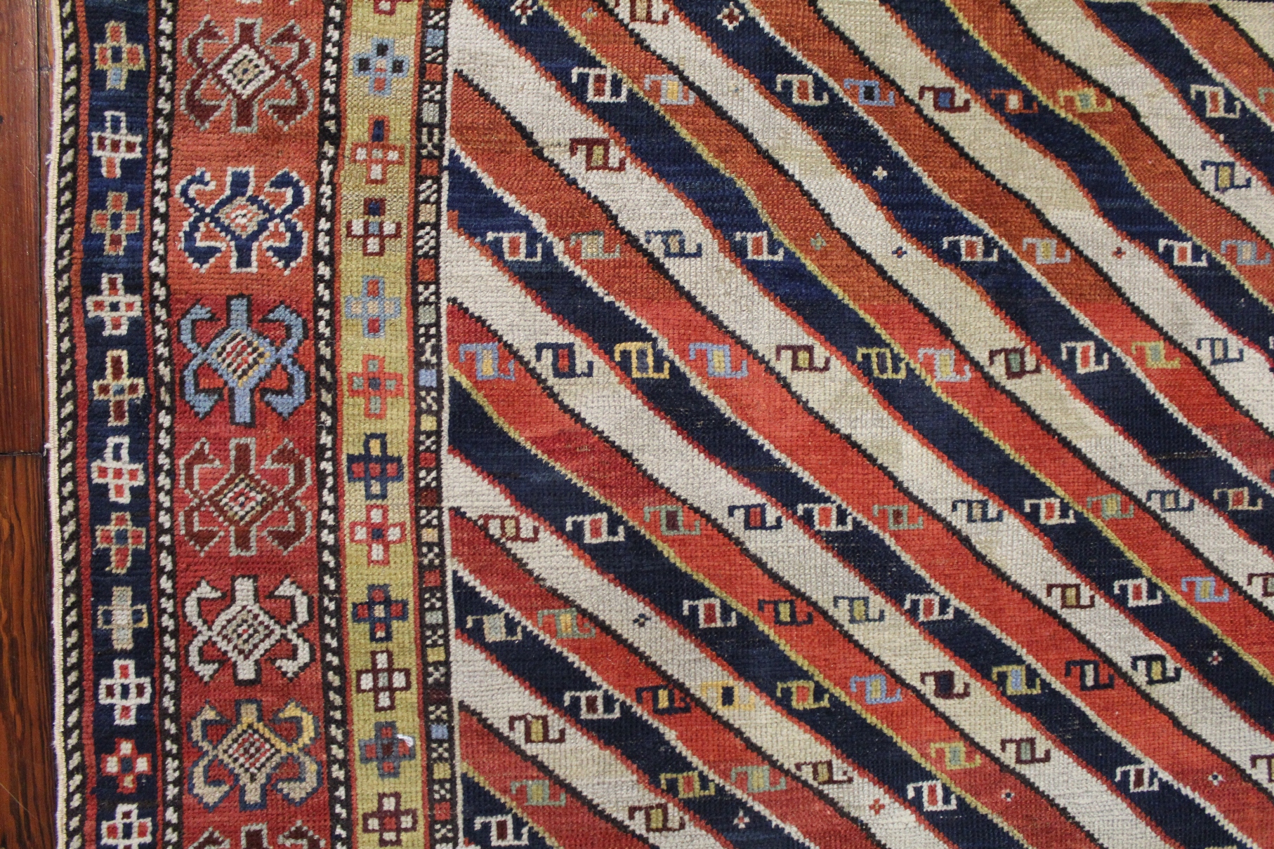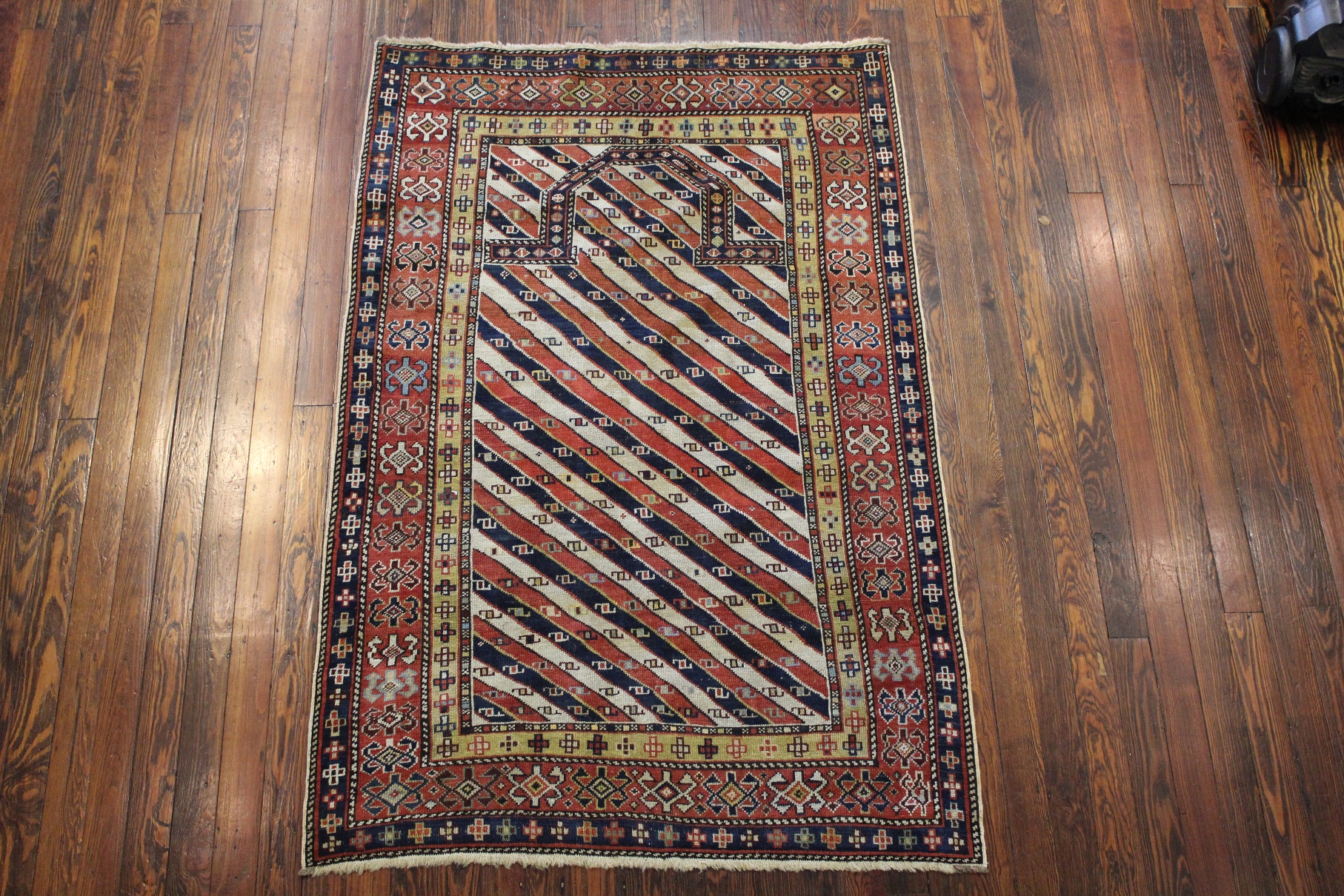 Rare Prayer Genje Kazak. This Genje design consists of diagonal stripes with botehs. Price upon request.